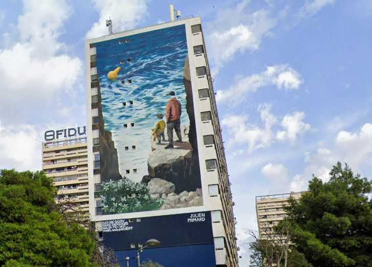 Il fallait bien qu'une des trois œuvres se situe face à la mer ! Et bien cela sera cette anamorphose de l'artiste marseillais Nitram Joke située Montée de la Napoule.