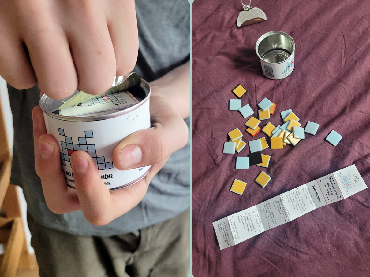 Il s'agit de former votre mosaïque sans la coller et d'évaluer le résultat (dimension, couleurs, aspect).